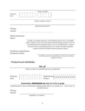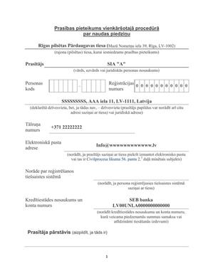 Pasūtījuma Izveides lapā aizpildiet Pieteikumu, kas sastāv no vairākiem laukumiem: