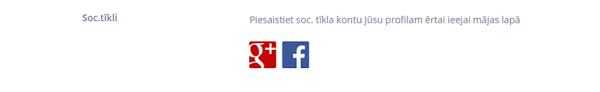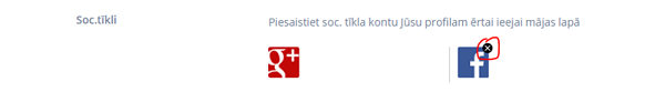 Ja reģistrējoties izmantojāt savu e-pastu kā ielogošanos veidu, tad Jūs varat piesaistīt savam profilam soc. tīkla kontu (Google vai Facebook) ātrākai un ērtākai ieejai vietnē, vienkārši noklikšķinot uz tā soc. tīkla logotipa, kuru Jūs lietojat.